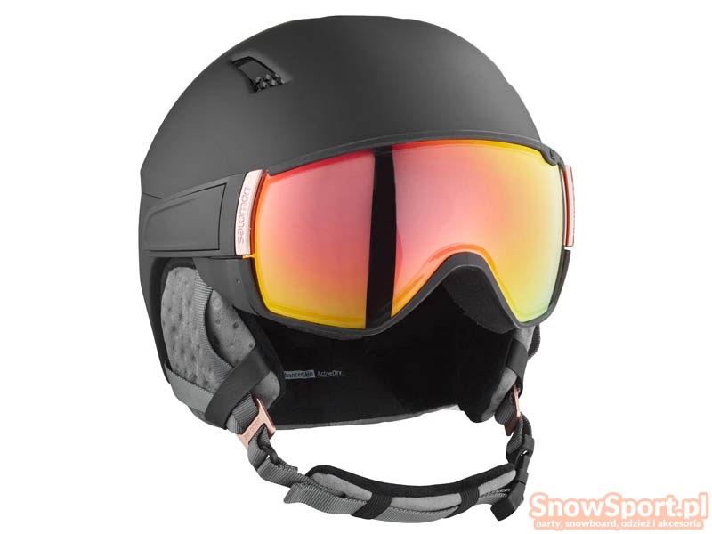 Kask narciarski z szybą dla noszących okulary