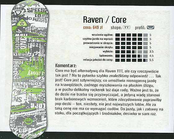Mój znajomy jeździ na modelu Raven sprzed 3 sezonów - model chyba nazywa się Sin. Poradził mi, żeby kupić Raven Core i jestem bardzo zadowolony. W porównaniu do deski Sin jest dużo lżejszy i wygląda na znacznie lepiej wykończony. Polecam wszystkim niezdecydowanym.