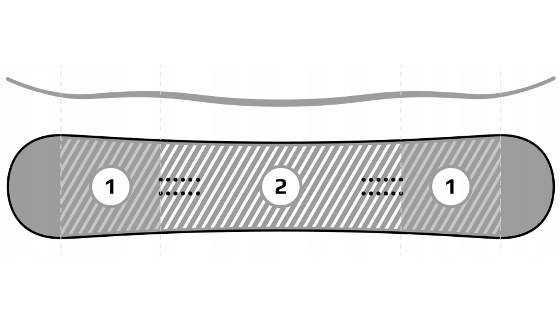 - Sidewall/Sandwich: zapewnia doskonałe przenoszenie reakcji snowboardzisty na krawędzie deski, wysoką precyzję prowadzenia i dużą stabilność