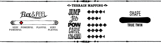 - Quickrip Sidecut - Innowacyjna technologia taliowania, sprawia że poczynisz postępy we freestyleu i zyskasz precyzję prowadzenia we freeridzie dzięki tej samej desce. Nie ma substytutu dla krótkich desek do jibbingu i butterów; Nie ma substytutu dla długości przy dużych prędkościach i dużych skokach.