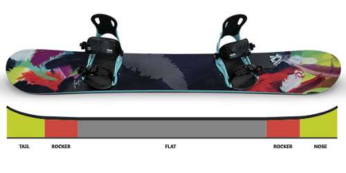 Flat Rocker ShapeTa deska jest płaska pomiędzy wiązaniami i ma minimalny rocker na przodzie i tyle, co sprawia, że jest łagodna na stoku, a jej pełny potencjał rozwija się w backcountry i parku. To sprawia, że te snowboardy są bardzo proste w obsłudze, a jednocześnie bardzo żywe i dużo wybaczają. Idealny kształt dla nowicjuszy w technologii rocker, ponieważ wciąż mogą jeździć na stoku, bez łapania krawędzi lub utknięcie w proszku. |