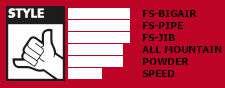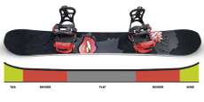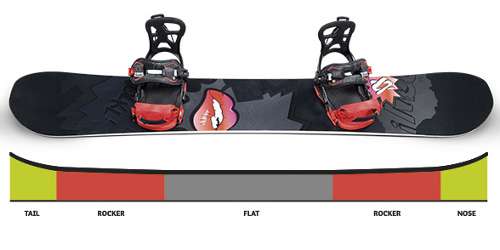 Kształt deski jest płaski pomiędzy wiązaniami, z umiarkowanym rockerem na przodzie i tyle deski, który sprawia, że wykonywanie jibów i butterów jest łatwe i swobodne. Nowoczesna geometria z mocniejszym taliowaniem i odpowiednio usztywnionym nose i tail włóknami węglowymi sprawia że po wejściu na krawędź zapominamy o tym że mamy pod nogami rockera, deska trzyma w skręcie i fajnie wycina łuki. Złapanie krawędzi w tej konstrukcji jest znacznie utrudnione, redukuje to liczbę upadków przy nauce nowych rzeczy.