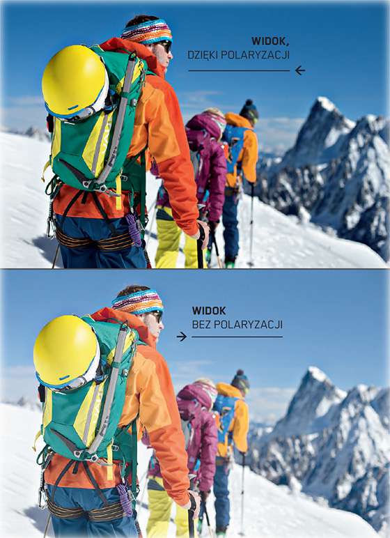 Polaryzacja redukuje odblaski i refleksy odbijane od śniegu. Filtr polaryzacyjny wbudowany wewnątrz polikarbonowej szyby chroni oczy przed nadwyrężającym światłem. Polaryzacyjna powłoka zamienia uciążliwe dla oka refleksy w przyjemne światło.