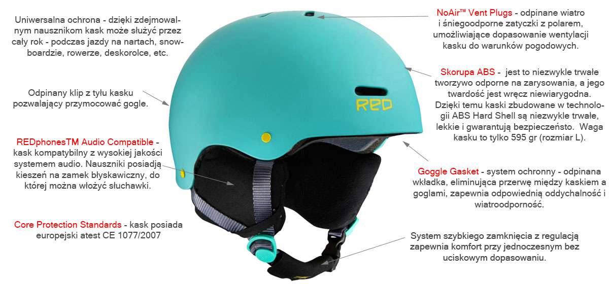 - REDphonesTM Audio Accesory Compatible - kask kompatybilny z wysokiej jakości systemem audio (do kupienia osobno)