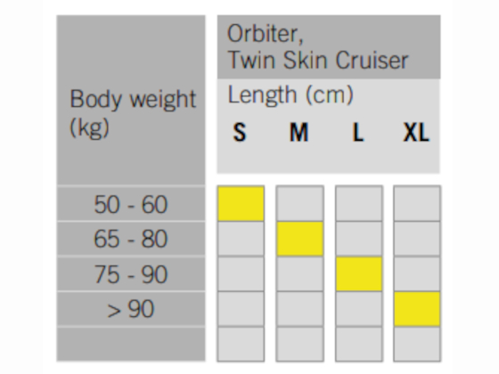 Waga narciarza | 49 - 59 kg | 55 - 69 kg | 60 - 74 kg | 70 - 84 kg | 75 - 89 kg | 85 - + kg |