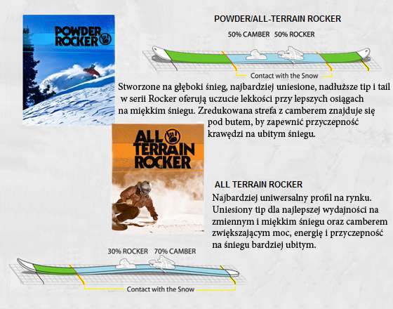 ![]() | ABSORB-ABS / URETHANE HYBRID SIDEWALLS Pozioma konstrukcja krawędzi łączy warstwy uretanów z ABS dla pełnej ABSorpcji wstrząsów, tłumiąc uderzenia z twardego lądowania. Uretanów użyto pod butem, by zwiększyć tłumienie, jednak ABS zastosowano w kierunkach obu końcówek, by zmaksymalizować wydajność i kontrolę krawędzi. |