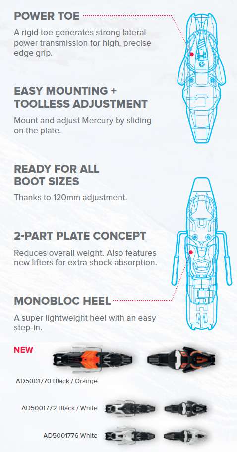 Mercury jest nowym ekscytującym systemem wiązań od Atomica dla nart z grupy performance - wyczynowego – dając Ci całą siłę oraz precyzję której potrzebujesz w ultralekkiej i praktycznej konstrukcji.