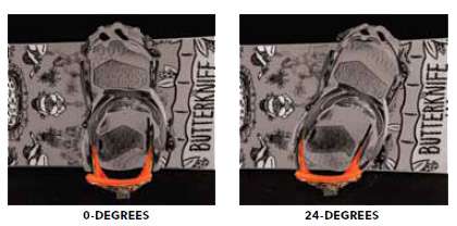 - UNDERWRAP HEEL HOOP zawinięty pod podstawę, wiązania szkielet wykonany jest z lekkiego aluminium. Wyprofilowanie to w rejonie przedniego strapa owocuje precyzyjnym przenoszeniem energii z pięty na palce. Pomaga również przy przenoszeniu ciężaru ciała z nosa na tail deski